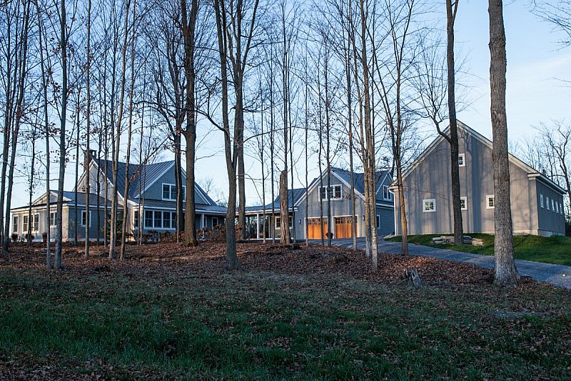Maple Hill sits on a rocky knoll, surrounded by mature maple trees and treasured wildflowers. Preserving the trees and woodland was a high priority to the owners. Massive piles of rock, as big as the house being built, were the result of extensive blasting. The management and removal of the large quantities of rock without damaging the trees and understory was very challenging. A gentle approach to the exisiting landscape in word and deed is something on which JB Construction prides themselves!